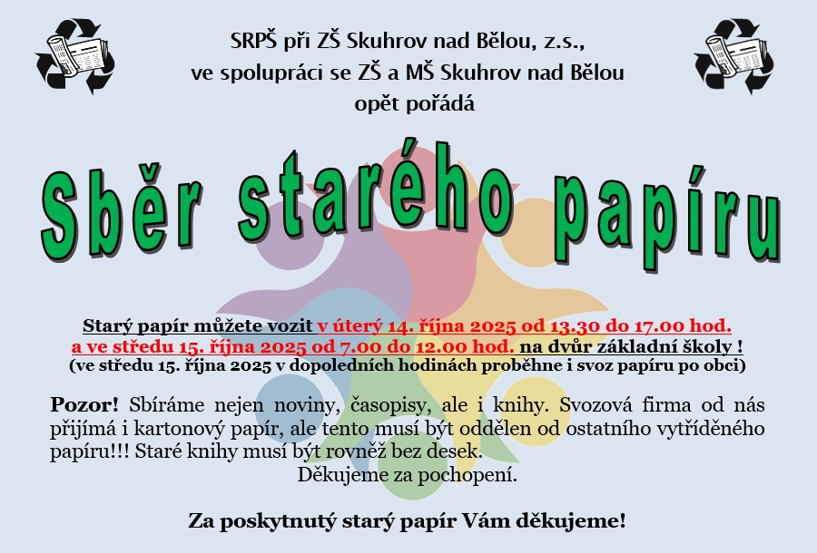SBĚR STARÉHO PAPÍRUPodzimní starého papíru se uskuteční v