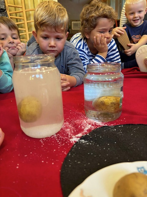 Během dne mohou děti kdykoliv využít pitného režimu z vlastního hrnečku s volbou nápoje. Na svačinu mají možnost si jídlo samy připravit a platí zde pravilo alespoň ochutnat.