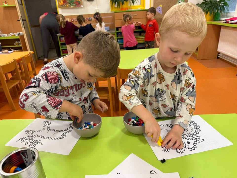 U Berušek jsme si v říjnu užili další dny "Pejsku vyprávěj "–Dary podzimu s veverkou a procvičování tlamiček, kdy jsme si krásně procvičili jazýčky. Byli u nás na návštěvě štěňátka. Máme za sebou i týden houbičkový a jablíčkový, vydali jsme se na výpravu za jablíčkem, ochutnávali jsme, kreslili, cvičili,…Při celoškolkové akci Mámo,táto pojdˇsi hrát jsme si pohráli a vyrobili dárečky.Užili jsme si draky, posvícení, halloweenskou stezku a stihli jsme uvařit polévku z dýně. Přijel se na nás podívat ježeček, o kterém jsme se dozvěděli spoustu zajímavých věcí.