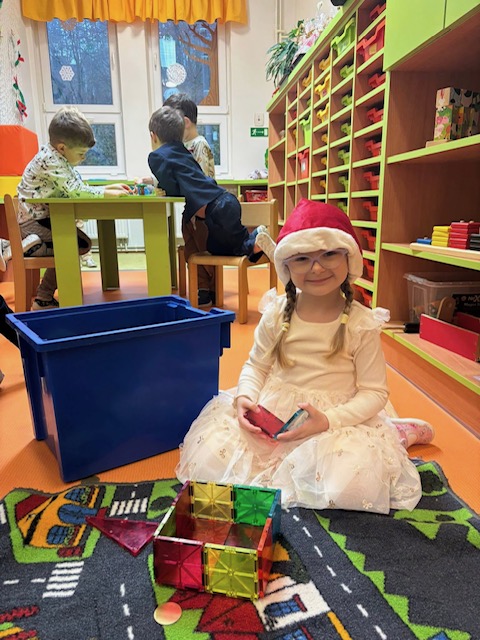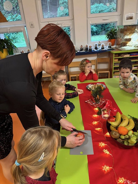Adventní čas jsme si užili s čertíky-tiskali jsme a malovali je kávou. Ale také s Mikulášem a andělem. Přijelo k nám hudební divadlo „Vánoce s rolničkou“. Natrhali jsme si barborku a pozorovali,zda vykvete. Užili jsme si adventní hraní s pejskem-orientace. Nejvíce jsme si užili „Štědrý den ve školce“, přišel Ježíšek a přinesl nám spoustu dárečků. Seznámili jsme se s vánočními tradicemi a čekal nás slavnostní oběd. Odpoledne se přišli podívat rodiče a pohrát si s novými hračkami.