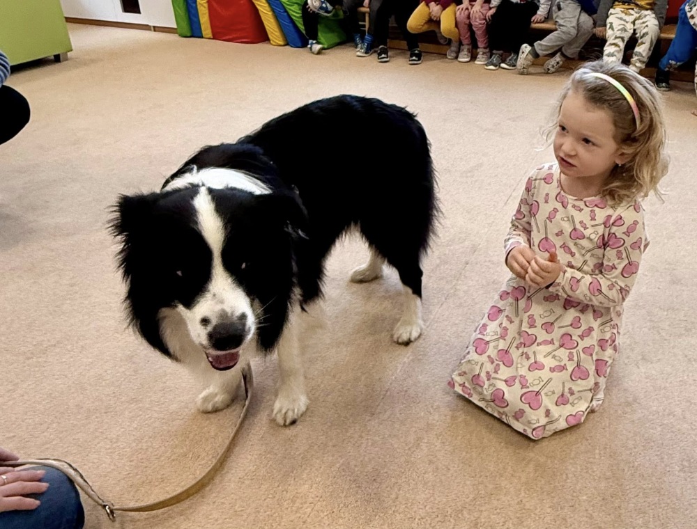 Od letošního školního roku 2025/2026 máme v našem „školkovém“ týmu nového člena, canisterapeutického psa Buddyho. „Báďa“, celým jménem Bombastic Buddy Fitmin je plemene Border kolie, je mu 2,5 roku. Se svou majitelkou Terezou Jandíkovou, paní učitelkou ze třídy Berušek, splnili na jaře zkoušky canisterapeutických týmů.