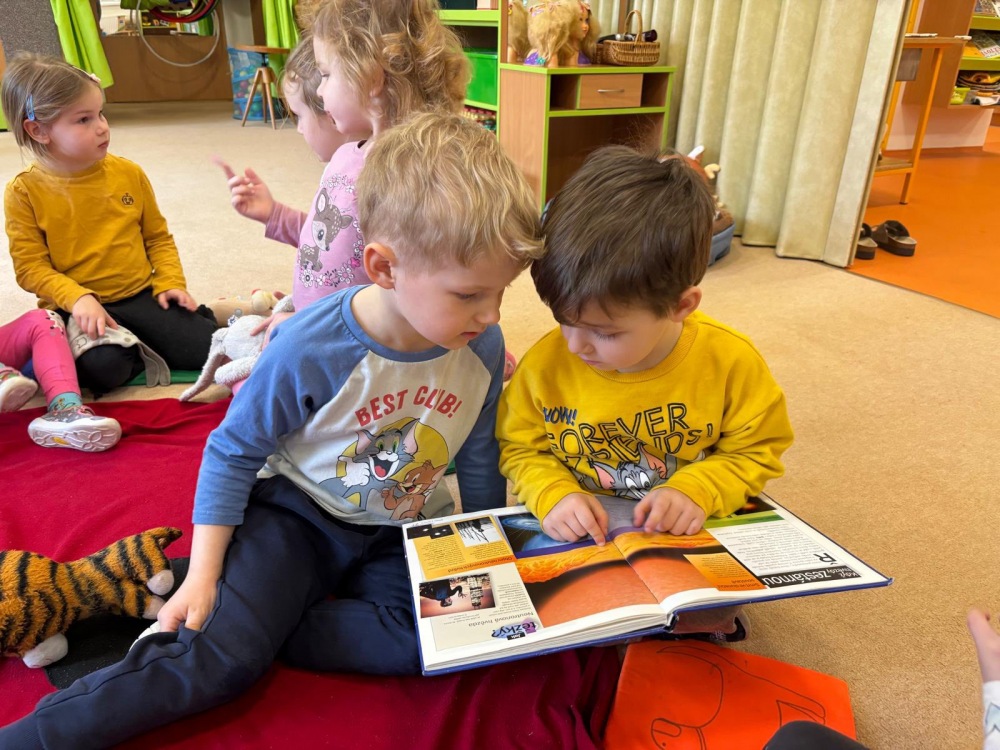 Ve třídě Berušek, tak pro tento rok vznikl projekt „Tlapku na to, Berušky“. Jeho součástí jsou tzv. psí dny s názvem „Pejsku vyprávěj“. Právě v těchto dnech nás navštěvuje „Bady“ a spolu s ním probíhá vzdělávání a hry. Součástí tohoto projektu je například i spolupráce se Psím Domovem Lukavice, návštěva a socializace bíglích štěňátek z chovné stanice Fearless Gillie, školní výlet do … a to už nebudeme prozrazovat. Necháme dětem a rodičům také nějaké překvapení, kam až nás to naše letošní psí dobrodružství v červnu zavede.