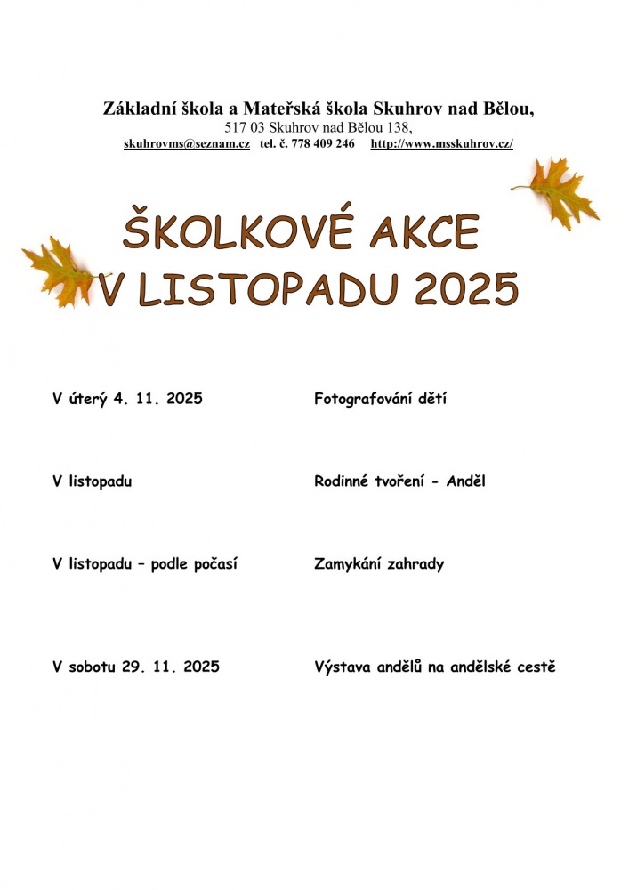 OZNÁMENÍ O PŘERUŠENÍ PROVOZU MATEŘSKÉ ŠKOLY SKUHROV N.B.